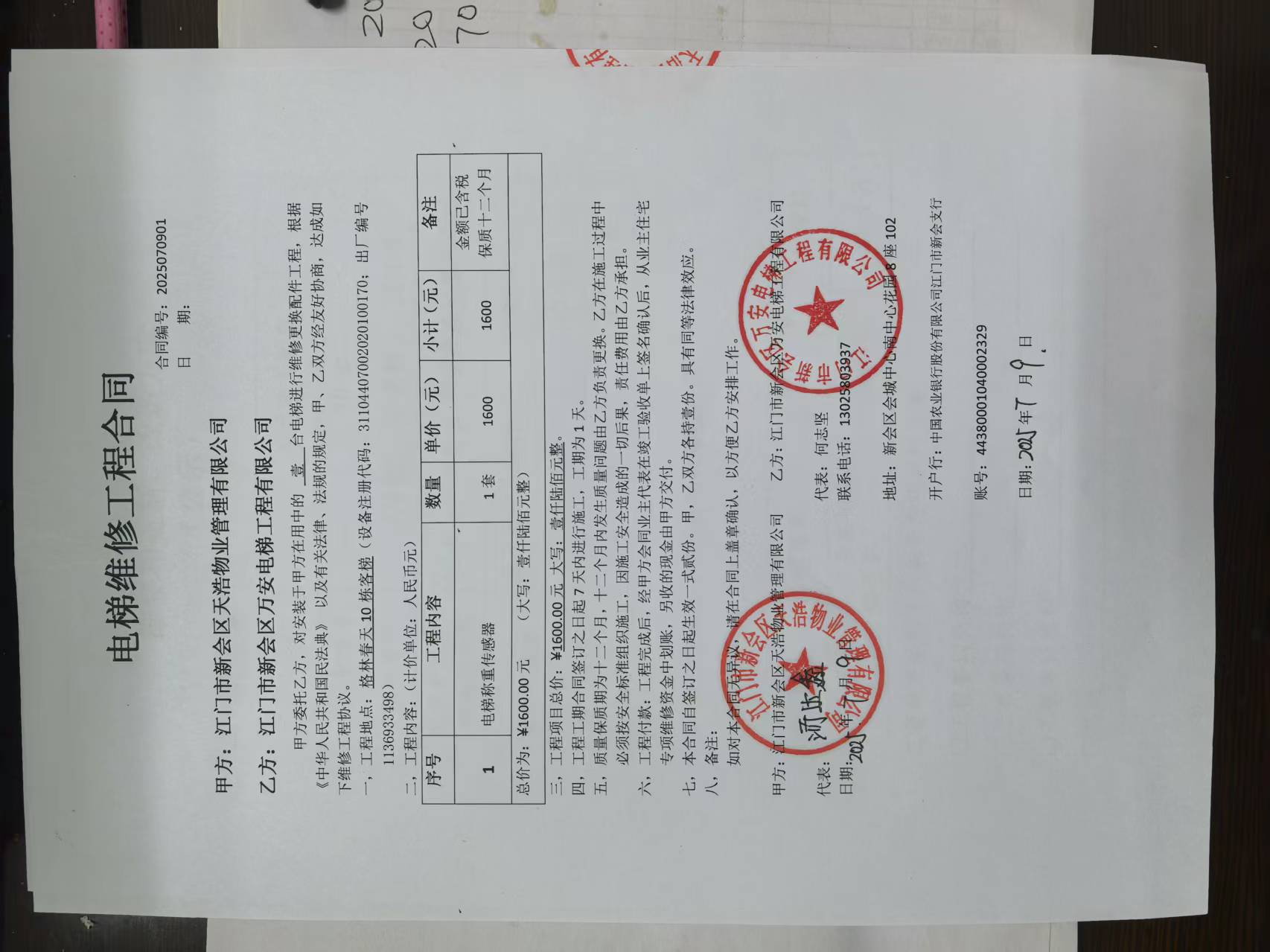 <td VALIGN="top" VALUES="" STYLE="border-width:0" BINDTYPE="0" ROWSPAN="19" COLSPAN="7" DATASOURCE="投票结果" ><font style="font-size:14pt;"><p style="white-space: normal; font-family: 宋体; line-height: 1.75em;">格林春天豪庭江海区格林春天豪庭10栋全体业主:</p><p style="white-space: normal; font-family: 宋体; line-height: 1.75em; text-indent: 2em;">本小区关于江门格林春天豪庭10栋客梯更换称重传感器使用维修资金投票的投票已表决结束,询异时间从2025年07月25日开始,投票询异公示期间,业主可通过微信查询自己的表决情况或可凭身份证件申请查询自己的表决情况;如公示的业主表决情况与查询的本人表决意见不一致的,可以以书面形式向投票组织机构申诉,投票组织机构予以纠正并重新公示表决结果。异议提出人对投票组织机构的处理仍有异议的,可以向街道办事处(镇人民政府)反映处理,涉及住宅专项维修资金的,可向属地住宅专项维修资金管理中心反映处理。</p><p style="white-space: normal;"><br/></p><p style="white-space: normal; font-family: 宋体; line-height: 1.75em;"><strong>附件:</strong></p><p style="white-space: normal; font-family: 宋体; line-height: 1.75em;"><strong>一、投票范围</strong></p><p style="white-space: normal; font-family: 宋体; line-height: 1.75em; text-indent: 2em;">格林春天豪庭江海区格林春天豪庭10栋</p><p style="white-space: normal; font-family: 宋体; line-height: 1.75em; text-indent: 2em;">总人数(专有部分人数之和):64</p><p style="white-space: normal; font-family: 宋体; line-height: 1.75em; text-indent: 2em;"><span style="font-family: 宋体, SimSun;"><span style="font-family: 宋体; text-indent: 32px;"><span style="font-family: 宋体; text-indent: 32px;">总户数:67</span></span></span></p><p style="white-space: normal; font-family: 宋体; line-height: 1.75em; text-indent: 2em;">建筑物总面积(专有部分面积之和):6200.85㎡</p><p style="white-space: normal; font-family: 宋体; line-height: 1.75em;"><strong>二、询异公示起止时间</strong></p><p dir="ltr" style="white-space: normal; font-family: 宋体; line-height: 1.75em; text-indent: 2em;"><span style="text-indent: 36px;">2025年07月25日至2025年08月04日</span></p><p style="white-space: normal; font-family: 宋体; line-height: 1.75em;"><strong>三、投票详细描述</strong></p><p style="white-space: normal; font-family: 宋体; line-height: 1.75em; text-indent: 2em;"><p style="font-family: "Helvetica Neue", Helvetica, Arial, sans-serif; font-size: 14px; text-wrap-mode: wrap; background-color: rgb(255, 255, 255);">经电梯人员检查发现10栋客梯因称重传感器故障,需暂停使用。</p><p style="font-family: "Helvetica Neue", Helvetica, Arial, sans-serif; font-size: 14px; text-wrap-mode: wrap; background-color: rgb(255, 255, 255);">现电梯维保公司维修配件报价为:1600元(此报价含税),因已过保修期,维修费用由相关业主按户分摊,按10栋67户计算,平均每户分摊23.88元。详见公示附件。如业主手机不能正常通过微信投票,请联系物业公司进行线下纸质投票,物业电话:18688522007.</p><p><br/></p></p><p style="white-space: normal; font-family: 宋体; line-height: 1.75em;"><strong>四、计票规则</strong></p><p style="white-space: normal; font-family: 宋体; line-height: 1.75em; text-indent: 2em;">表决事项:使用建筑物及其附属设施的维修资金<br /><p style='text-align: left; font-family: 宋体; font-size: 16px; line-height: 1.75em; text-indent: 2em;'>计票规则:弃权票不并入其它项 未表决票不并入其它项</p></p><p style="white-space: normal; font-family: 宋体; line-height: 1.75em;"><strong>五、通过规则</strong></p><p style="white-space: normal; font-family: 宋体; line-height: 1.75em;"><strong><strong style="white-space: normal;"><span style="font-family: 宋体, SimSun;"> 根据《中华人民共和国民法典》第二百七十八条规定:业主共同决定事项,应当由专有部分面积占比三分之二以上的业主且人数占比三分之二以上的业主参与表决。</span></strong></strong></p><p style="white-space: normal; font-family: 宋体; line-height: 1.75em; text-indent: 2em;">表决事项:使用建筑物及其附属设施的维修资金<br /><p style='text-align: left; font-family: 宋体; font-size: 16px; line-height: 1.75em; text-indent: 2em;'>通过规则:双2/3以上参与表决,参与表决双过半同意</p></p><p style="white-space: normal; font-family: 宋体; line-height: 1.75em;"><strong>六、投票结果</strong></p><p style="white-space: normal; font-family: 宋体; line-height: 1.75em; text-indent: 2em;"><div id='resultTable'><table style='table-layout: fixed; font-size:12px; margin-top:10px' width='100%' border='0' cellspacing='0' cellpadding='0'><tr><td height='28' colspan='10' align='center' style='border: 1px solid #666'><strong style='font-size: 14px;'> 使用建筑物及其附属设施的维修资金</strong></td> </tr><tr id='trfirst'><td height='28' colspan='4' style='border-left: 1px solid #666; border-bottom: 1px solid #666'><strong> 申报单位:</strong> 江门市新会区天浩物业管理有限公司</td><td colspan='3' style='border-left: 1px solid #666; border-bottom: 1px solid #666'><strong> 联系方式:</strong> </td><td colspan='3' style='border-left: 1px solid #666; border-bottom: 1px solid #666; border-right: 1px solid #666'><strong> 申报日期:</strong> 2025年7月16日 </td></tr><tr> <td height='28' colspan='5' style='border-left: 1px solid #666; border-bottom: 1px solid #666'><strong> 总人数(专有部分人数之和):</strong>64人 </td><td colspan='5' style='border-left: 1px solid #666; border-bottom: 1px solid #666; border-right: 1px solid #666'><strong> 建筑物总面积(专有部分面积之和):</strong>6200.85㎡ </td> </tr><tr><td height='28' colspan='10' bgcol