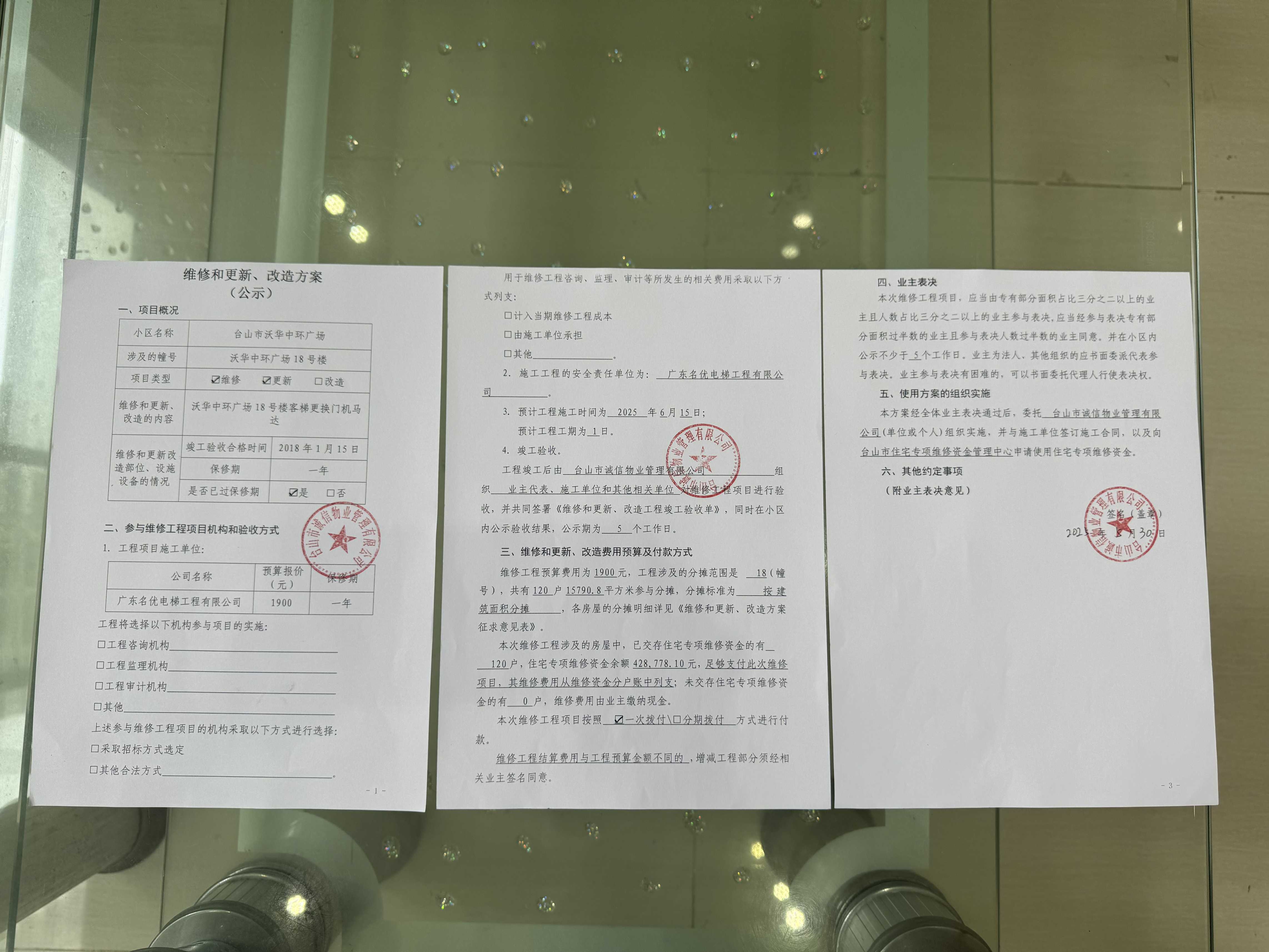<td VALIGN="top" VALUES="" STYLE="border-width:0" BINDTYPE="0" ROWSPAN="17" COLSPAN="7" DATASOURCE="投票结果" ><font style=" font-family:方正小标宋简体;font-size:14pt;"><p style="line-height: 1.75em;"><span style="font-family: 宋体, SimSun;">各位尊敬的业主:</span><br/></p><p style="text-indent: 2em; line-height: 1.75em;"><span style="font-family: 宋体, SimSun;">根据法律法规的规定,本小区业主利用“江门市物业事项表决管理系统”已对本小区公共事务决策事项(<span style="font-family: 宋体; text-indent: 32px;">沃华中环广场18号楼客梯更换门机马达使用维修资金的投票</span>)进行了表决,在经过7日的询异公示期后,未收到业主有效的异议。现将投票结果公告,并就产生的法律效力说明如下:</span></p><p style="line-height: 1.75em; text-indent: 0em;"><strong style="text-indent: 2em;"><span style="font-family: 宋体, SimSun;">一、投票范围</span></strong></p><p style="text-indent: 2em; line-height: 1.75em;"><span style="font-family: 宋体, SimSun;">台山沃华中环广场台山沃华中环广场18号楼</span></p><p style="text-indent: 2em; line-height: 1.75em;"><span style="font-family: 宋体, SimSun;">总人数(专有部分人数之和):120</span></p><p style="text-indent: 2em; line-height: 1.75em;"><span style="font-family: 宋体, SimSun;"><span style="font-family: 宋体, SimSun; text-indent: 32px;"><span style="font-family: 宋体; text-indent: 32px;"><span style="font-family: 宋体; text-indent: 32px;">总户数:120</span></span></span></span></p><p style="text-indent: 2em; line-height: 1.75em;"><span style="font-family: 宋体, SimSun;">建筑物总面积(专有部分面积之和):15790.80㎡</span></p><p style="line-height: 1.75em;"><strong><span style="font-family: 宋体, SimSun;">二、投票结果公告时间</span></strong></p><p style="text-indent: 2em; line-height: 1.75em;"><span style="font-family: 宋体, SimSun;"><span style="font-family: 宋体, SimSun; text-indent: 32px;">从2025年07月08日开始</span></span></p><p style="line-height: 1.75em;"><strong><span style="font-family: 宋体, SimSun;">三、计票规则</span></strong></p><p style="text-indent: 2em; line-height: 1.75em;"><span style="font-family: 宋体, SimSun;">表决事项:使用建筑物及其附属设施的维修资金<br /><p style='font-family: 宋体, SimSun;line-height: 1.75em; text-indent: 2em;'>计票规则:弃权票不并入其它项&nbsp;&nbsp;&nbsp;&nbsp;未表决票不并入其它项</p></span></p><p style="line-height: 1.75em;"><strong><span style="font-family: 宋体, SimSun;">四、通过规则</span></strong></p><p style="line-height: 1.75em;"><strong><span style="font-family: 宋体, SimSun;">&nbsp; 根据《中华人民共和国民法典》第二百七十八条规定:业主共同决定事项,应当由专有部分面积占比三分之二以上的业主且人数占比三分之二以上的业主参与表决。</span></strong></p><p style="text-indent: 2em; line-height: 1.75em;"><span style="font-family: 宋体, SimSun;"><span style="font-family: 宋体, SimSun; text-indent: 32px;">表决事项:使用建筑物及其附属设施的维修资金<br /><p style='font-family: 宋体, SimSun;line-height: 1.75em; text-indent: 2em;'>通过规则:双2/3以上参与表决,参与表决双过半同意</p></span></span></p><p style="line-height: 1.75em;"><strong><span style="font-family: 宋体, SimSun;">五、投票结果</span></strong></p><p style="line-height: 1.75em; text-indent: 2em;"><span style="font-family: 宋体, SimSun; text-indent: 2em;"><div id='resultTable'><table style='table-layout: fixed; font-size:12px; margin-top:10px' width='100%' border='0' cellspacing='0' cellpadding='0'><tr><td height='28' colspan='10' align='center' style='border: 1px solid #666'><strong style='font-size: 14px;'> 使用建筑物及其附属设施的维修资金</strong></td> </tr><tr id='trfirst'><td height='28' colspan='4' style='border-left: 1px solid #666; border-bottom: 1px solid #666'><strong>&nbsp;申报单位:</strong> 台山市诚信物业管理有限公司</td><td colspan='3' style='border-left: 1px solid #666; border-bottom: 1px solid #666'><strong>&nbsp;联系方式:</strong> 5555819 </td><td colspan='3' style='border-left: 1px solid #666; border-bottom: 1px solid #666; border-right: 1px solid #666'><strong>&nbsp;申报日期:</strong> 2025年6月1日 </td></tr><tr> <td height='28' colspan='5' style='border-left: 1px solid #666; border-bottom: 1px solid #666'><strong>&nbsp;列支总人数(专有部分人数之和):</strong>120人 </td><td colspan='5' style='border-left: 1px solid #666; border-bottom: 1px solid #666; border-right: 1px solid #666'><strong>&nbsp;列支建筑物总面积(专有部分面积之和):</strong>15790.80㎡ </td> </tr><tr><td height='28' colspan='10' bgcolor='#F3F3F3' style='border-left: 1px solid #666;border-bottom: 1px solid #666;border-right: 1px solid #666'><strong>&nbsp;参与表决人数及面积统计</strong></td></tr><tr><td height='28' colspan='5' style='border-left: 1px solid #666; border-bottom: 1px solid #666'><strong>&nbsp;参与表决人数:</strong>85人</td><td colspan='5' style='border-left: 1px solid #666; border-bottom: 1px solid #666; border-right: 1px solid #666'><strong>&nbsp;参与表决人数占总人数比例:</strong>70.83%</td></tr><tr><td height='28' colspan='5' style='border-left: 1px solid #666; border-bottom: 1px solid #666'><strong>&nbsp;参与表决面积:</strong>11202.01㎡</td><td colspan='5' style='border-left: 1px solid #666; border-bottom: 1px solid #666; border-right: 1px solid #666'><strong>&nbsp;参与表决面积占总面积比例:</strong>70.94%</td></tr><tr><td height='28' colspan='10' bgcolor='#F3F3F3' style='border-left: 1px solid #666; border-bottom: 1px solid #666;border-right: 1px solid #666'> <strong>&nbsp;参与表决同意人数及面积统计</strong></td> </tr><tr><td height='28' colspan='5' style='border-le