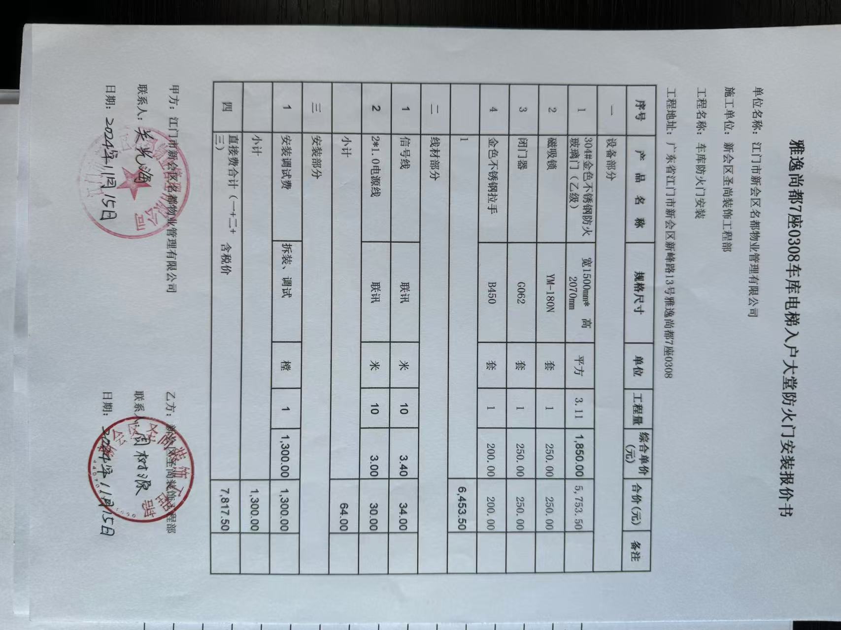 <td VALIGN="top" VALUES="" STYLE="border-width:0" BINDTYPE="0" ROWSPAN="19" COLSPAN="7" DATASOURCE="投票结果" ><font style="font-size:14pt;"><p style="white-space: normal; font-family: 宋体; line-height: 1.75em;">雅逸尚都雅逸尚都7座全体业主:</p><p style="white-space: normal; font-family: 宋体; line-height: 1.75em; text-indent: 2em;">本小区关于雅逸尚都7座0308单元车库入户大堂更换防火门使用维修资金的投票的投票已表决结束,询异时间从2025年01月10日开始,投票询异公示期间,业主可通过微信查询自己的表决情况或可凭身份证件申请查询自己的表决情况;如公示的业主表决情况与查询的本人表决意见不一致的,可以以书面形式向投票组织机构申诉,投票组织机构予以纠正并重新公示表决结果。异议提出人对投票组织机构的处理仍有异议的,可以向街道办事处(镇人民政府)反映处理,涉及住宅专项维修资金的,可向属地住宅专项维修资金管理中心反映处理。</p><p style="white-space: normal;"><br/></p><p style="white-space: normal; font-family: 宋体; line-height: 1.75em;"><strong>附件:</strong></p><p style="white-space: normal; font-family: 宋体; line-height: 1.75em;"><strong>一、投票范围</strong></p><p style="white-space: normal; font-family: 宋体; line-height: 1.75em; text-indent: 2em;">雅逸尚都雅逸尚都7座</p><p style="white-space: normal; font-family: 宋体; line-height: 1.75em; text-indent: 2em;">总人数(专有部分人数之和):34</p><p style="white-space: normal; font-family: 宋体; line-height: 1.75em; text-indent: 2em;"><span style="font-family: 宋体, SimSun;"><span style="font-family: 宋体; text-indent: 32px;"><span style="font-family: 宋体; text-indent: 32px;">总户数:34</span></span></span></p><p style="white-space: normal; font-family: 宋体; line-height: 1.75em; text-indent: 2em;">建筑物总面积(专有部分面积之和):4305.59㎡</p><p style="white-space: normal; font-family: 宋体; line-height: 1.75em;"><strong>二、询异公示起止时间</strong></p><p dir="ltr" style="white-space: normal; font-family: 宋体; line-height: 1.75em; text-indent: 2em;"><span style="text-indent: 36px;">2025年01月10日至2025年01月20日</span></p><p style="white-space: normal; font-family: 宋体; line-height: 1.75em;"><strong>三、投票详细描述</strong></p><p style="white-space: normal; font-family: 宋体; line-height: 1.75em; text-indent: 2em;"><p><span style="font-family: "Helvetica Neue", Helvetica, Arial, sans-serif; font-size: 14px; text-wrap: wrap; background-color: rgb(255, 255, 255);">本小区7座0308单元车库入户大堂防火门经常坏,经师傅多次维修仍会坏,因使用时间较<span style="font-family: "Helvetica Neue", Helvetica, Arial, sans-serif; font-size: 14px; text-wrap-mode: wrap; background-color: rgb(255, 255, 255);">长和使用的人较多,经常出现门坏和严重变型导致锁不了门</span>。现对7座0308单元车库入户大堂防火门进行更换,</span><span style="font-family: "Helvetica Neue", Helvetica, Arial, sans-serif; font-size: 14px; text-wrap: wrap; background-color: rgb(255, 255, 255);">工程维修预算金额为7817.50元,项目最终费用以施工合同签订金额为准。因已过保修期,维修费用的分摊标准为按建筑面积分摊,<span style="text-wrap-style: initial;">每平方约1.8156628940516元,详见公示附件</span>。如业主手机不能正常通过微信投票,请联系物业公司进行线下纸质投票,物业电话:0750-6609908。</span></p></p><p style="white-space: normal; font-family: 宋体; line-height: 1.75em;"><strong>四、计票规则</strong></p><p style="white-space: normal; font-family: 宋体; line-height: 1.75em; text-indent: 2em;">表决事项:使用建筑物及其附属设施的维修资金<br /><p style='text-align: left; font-family: 宋体; font-size: 16px; line-height: 1.75em; text-indent: 2em;'>计票规则:弃权票不并入其它项 未表决票不并入其它项</p></p><p style="white-space: normal; font-family: 宋体; line-height: 1.75em;"><strong>五、通过规则</strong></p><p style="white-space: normal; font-family: 宋体; line-height: 1.75em;"><strong><strong style="white-space: normal;"><span style="font-family: 宋体, SimSun;"> 根据《中华人民共和国民法典》第二百七十八条规定:业主共同决定事项,应当由专有部分面积占比三分之二以上的业主且人数占比三分之二以上的业主参与表决。</span></strong></strong></p><p style="white-space: normal; font-family: 宋体; line-height: 1.75em; text-indent: 2em;">表决事项:使用建筑物及其附属设施的维修资金<br /><p style='text-align: left; font-family: 宋体; font-size: 16px; line-height: 1.75em; text-indent: 2em;'>通过规则:双2/3以上参与表决,参与表决双过半同意</p></p><p style="white-space: normal; font-family: 宋体; line-height: 1.75em;"><strong>六、投票结果</strong></p><p style="white-space: normal; font-family: 宋体; line-height: 1.75em; text-indent: 2em;"><div id='resultTable'><table style='table-layout: fixed; font-size:12px; margin-top:10px' width='100%' border='0' cellspacing='0' cellpadding='0'><tr><td height='28' colspan='10' align='center' style='border: 1px solid #666'><strong style='font-size: 14px;'> 使用建筑物及其附属设施的维修资金</strong></td> </tr><tr id='trfirst'><td height='28' colspan='4' style='border-left: 1px solid #666; border-bottom: 1px solid #666'><strong> 申报单位:</strong> 江门市新会区名都物业管理有限公司</td><td colspan='3' style='border-left: 1px solid #666; border-bottom: 1px solid #666'><strong> 联系方式:</strong> 6609908 </td><td colspan='3' style='border-left: 1px solid #666; border-bottom: 1px solid #666; border-right: 1px solid #666'><strong> 申报日期:</strong> 2024年12月3日 </td></tr><tr> <td height='28' colspan='5' style='