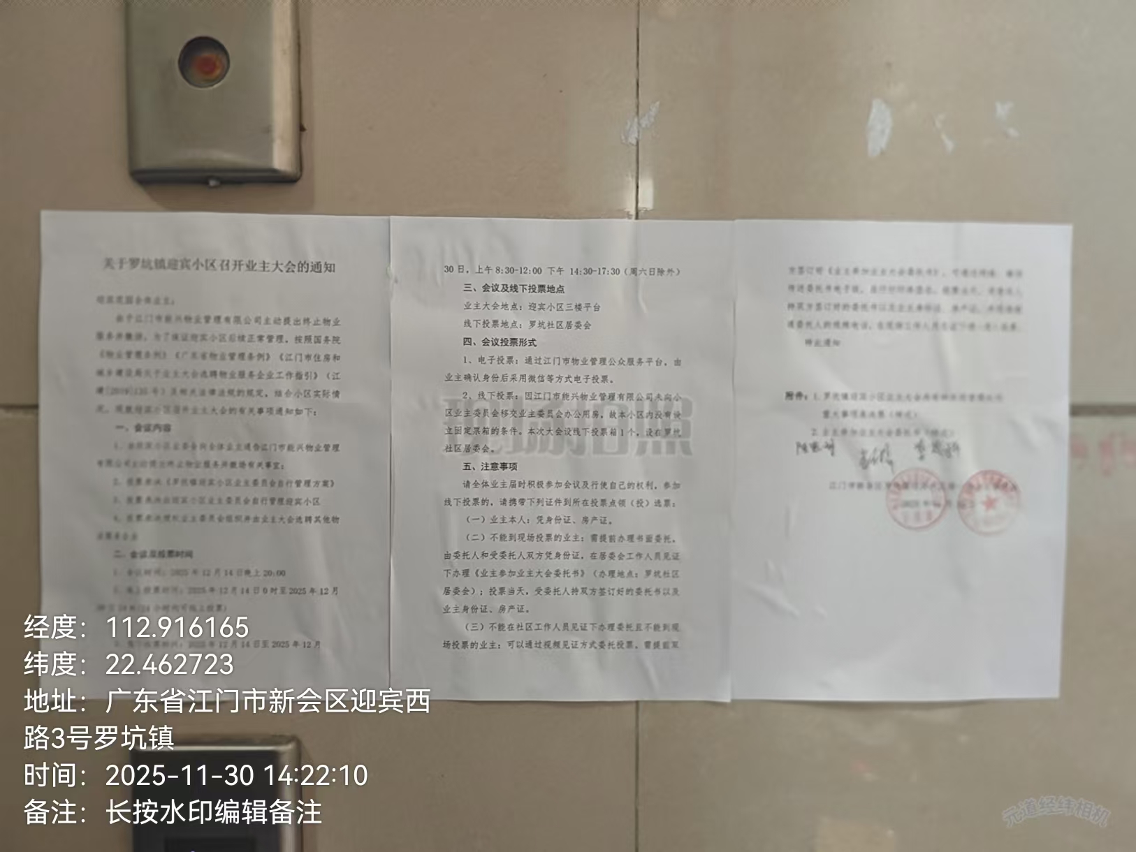 <td VALIGN="top" VALUES="" STYLE="border-width:0" BINDTYPE="0" ROWSPAN="19" COLSPAN="7" DATASOURCE="投票结果" ><font style="font-size:14pt;"><p style="text-align: left; font-family: 宋体; font-size: 16px; line-height: 1.75em;"><span style="font-family: 宋体;">迎宾商住小区车库、商铺、迎宾小区1座、迎宾小区2座、迎宾小区3座、迎宾小区5座全体业主:</span></p><p style="text-align: left; font-family: 宋体; font-size: 16px; line-height: 1.75em; text-indent: 2em;">本小区关于迎宾小区关于制定业主委员会自行管理方案并由业主委员会自行管理的投票的投票已表决结束,询异时间从2025年12月31日开始,投票询异公示期间,业主可通过微信查询自己的表决情况或可凭身份证件申请查询自己的表决情况;如公示的业主表决情况与查询的本人表决意见不一致的,可以以书面形式向投票组织机构申诉,投票组织机构予以纠正并重新公示表决结果。异议提出人对投票组织机构的处理仍有异议的,可以向街道办事处(镇人民政府)反映处理,涉及住宅专项维修资金的,可向属地住宅专项维修资金管理中心反映处理。</p><p><br/></p><p style="text-align: left; font-family: 宋体; font-size: 16px; line-height: 1.75em;"><strong><span style="font-family: 宋体">附件:</span></strong></p><p style="text-align: left; font-family: 宋体; font-size: 16px; line-height: 1.75em;"><strong>一、投票范围</strong></p><p style="text-align: left; font-family: 宋体; font-size: 16px; line-height: 1.75em; text-indent: 2em;">迎宾商住小区车库、商铺、迎宾小区1座、迎宾小区2座、迎宾小区3座、迎宾小区5座</p><p style="text-align: left; font-family: 宋体; font-size: 16px; line-height: 1.75em; text-indent: 2em;">总人数(专有部分人数之和):183</p><p style="text-align: left; font-family: 宋体; font-size: 16px; line-height: 1.75em; text-indent: 2em;">建筑物总面积(专有部分面积之和):26643.67㎡</p><p style="text-align: left; font-family: 宋体; font-size: 16px; line-height: 1.75em;"><strong>二、询异公示起止时间</strong></p><p dir="ltr" style="text-align: left; font-family: 宋体; font-size: 16px; line-height: 1.75em; text-indent: 2em;"><span style="font-family: 宋体; text-indent: 36px;">2025年12月31日至2026年01月10日</span></p><p style="text-align: left; font-family: 宋体; font-size: 16px; line-height: 1.75em;"><strong>三、投票详细描述</strong></p><p style="text-align: left; font-family: 宋体; font-size: 16px; line-height: 1.75em; text-indent: 2em;"><p style="text-align:center"><span style=";font-family:宋体;font-size:29px">关于</span><span style=";font-family:宋体;font-size:29px">罗坑镇迎宾小区</span><span style=";font-family:宋体;font-size:29px">召开业主大会的通知</span></p><p><span style=";font-family:仿宋;font-size:21px"> </span></p><p><span style=";font-family:仿宋;font-size:21px">迎宾花园</span><span style=";font-family:仿宋;font-size:21px">全体业主:</span></p><p style="text-indent:43px"><span style=";font-family:仿宋;font-size:21px">由于</span><span style=";font-family:仿宋;font-size:21px">江门市能兴物业管理有限公司</span><span style=";font-family:仿宋;font-size:21px">主动提出终止物业服务并撤场,为了</span><span style=";font-family:仿宋;font-size:21px">保证迎宾</span><span style=";font-family:仿宋;font-size:21px">小区</span><span style=";font-family:仿宋;font-size:21px">后续</span><span style=";font-family:仿宋;font-size:21px">正常管理,按照国务院《物业管理条例》《广东省物业管理条例》《江门市住房和城乡建设局关于业主大会选聘物业服务企业工作指引》(江建</span><span style=";font-family:仿宋;font-size:21px">[</span><span style=";font-family:仿宋;font-size:21px">2019</span><span style=";font-family:仿宋;font-size:21px">]</span><span style=";font-family:仿宋;font-size:21px">135号)及相关法律法规的规定,结合小区实际情况,现就</span><span style=";font-family:仿宋;font-size:21px">迎宾</span><span style=";font-family:仿宋;font-size:21px">小区召开业主大会的有关事项通知如下:</span></p><p style="text-indent:43px"><span style=";font-family:仿宋;font-size:21px"> </span></p><p style="text-indent:43px"><span style=";font-family:黑体;font-size:21px">一、</span><span style=";font-family:黑体;font-size:21px">会议内容</span></p><p style="text-indent:43px"><span style=";font-family:仿宋;font-size:21px">1、由迎宾小区业委会向全体业主通告江门市能兴物业管理有限公司主动提出终止物业服务并撤场有关事宜;</span></p><p style="text-indent:43px"><span style=";font-family:仿宋;font-size:21px">2、</span><span style=";font-family:仿宋;font-size:21px">投票表决</span><span style=";font-family:仿宋;font-size:21px">《罗坑镇迎宾小区业主委员会自行管理方案》</span></p><p style="text-indent:43px"><span style=";font-family:仿宋;font-size:21px">3、投票表决由迎宾小区业主委员会自行管理迎宾小区</span></p><p style="text-indent:43px"><span style=";font-family:仿宋;font-size:21px">4、投票表决授权业主委员会组织并由业主大会选聘其他物业服务企业</span></p><p style=";text-indent:43px"><span style=";font-family:黑体;font-size:21px">二、</span><span style=";font-family:黑体;font-size:21px">会议</span><span style=";font-family:黑体;font-size:21px">及投票</span><span style=";font-family:黑体;font-size:21px">时间</span></p><p style=";text-indent:43px"><span style=";font-family:仿宋;font-size:21px">1、会议时间:</span><span style=";font-family:仿宋;font-size:21px">2025年</span><span style=";font-family:仿宋;font-size:21px">12</span><span style=";font-family:仿宋;font-size:21px">月</span><span style=";font-family:仿宋;font-size:21px">